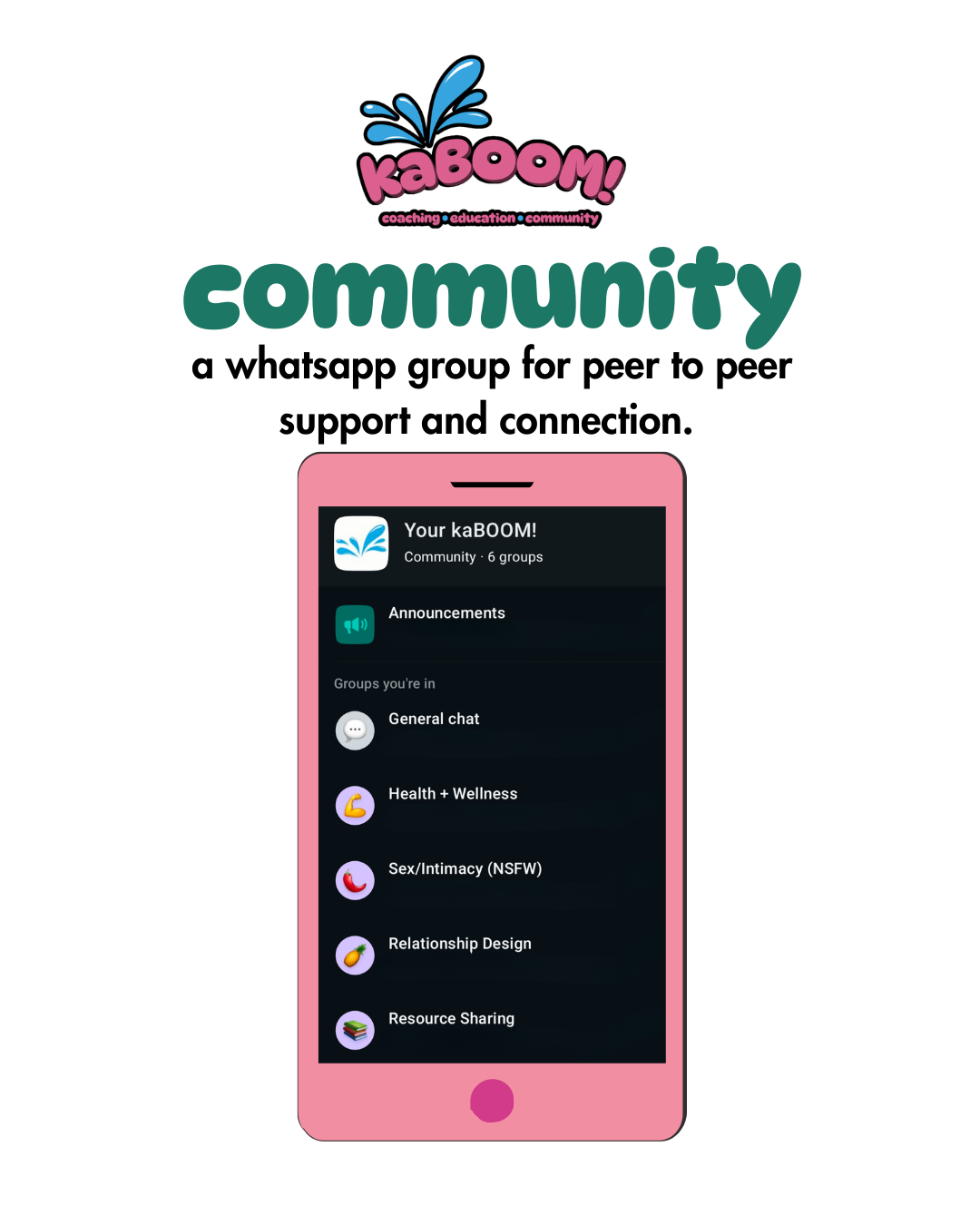 Join the Kaboom WhatsApp Community. A peer-to-peer space for people exploring relationships beyond the default.